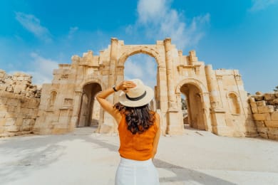 Today we head out on a city tour of Amman, taking in its rich history which dates back many millennia. We'll start with a visit to the Citadel - the former home of the ancient temple of Hercules, the Umayyad Palace, Byzantine Church and the ancient Roman theatre, which is still being used today to host various cultural events. Next, we make our way to Jerash, one of the most well-preserved Roman architecture sites on the planet. Jerash was hidden underneath sand for centuries and over the past 70 years, archaeological work has uncovered that Jerash was once a fine example of Roam urbanism, boasting paved and colonnaded streets, hilltop temples, public squares and plazas.