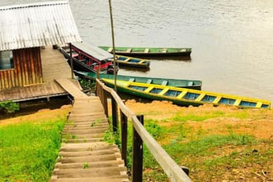 Hop into a comfortable van for a scenic 60-minute drive deep into the rainforest, passing rustic villages and untamed landscapes until you reach Paraná do Mamori.