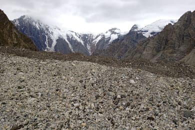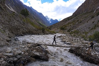 Trek through the remote, mountainous terrain parallel to the Masherbrum Glacier to Brumbramah (3950m).
