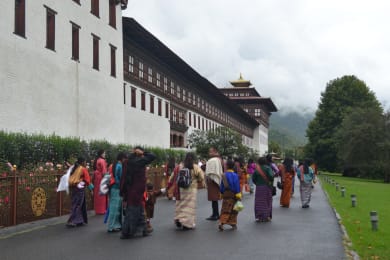 Today we explore the best attractions of Thimphu city (2,300m), home to approximately 138,736 inhabitants. Morning begins with a visit to the National Memorial Chorten (stupa), built in 1974 in honour of the Third King Jigme Dorji Wangchuk (1928-1972). This stupa is a prominent monument for Bhutanese daily worship in the city with its golden spires and bells. Another must-see place to tick off your list is Kuenselphodrang, home to the 169-foot Buddha Dordenma statue, the largest of its kind, which was erected in 2006. Our next stop is at the Motithang Takin Reserve, home to Bhutan's national animal, followed by the National Institute for Zorig Chusum, established in 1971 where students are taught the 13 traditional arts and crafts of Bhutan. Proceed to the nearby National Library of Bhutan, established in 1967, located in the cultural center of Thimphu, the capital of Bhutan. Here, you'll find the world's largest book, Bhutan: A Visual Odyssey Across the Last Himalayan Kingdom. It weighs over 60 kg, stands 1.52 meters high, and spans 2.13 meters wide. Its pages are turned once a month. We then continue to the Bhutan Postal Museum, a must-visit for philatelists and those looking to purchase postcards and stamps. If time permits, visit the Tashichhodzong, initially constructed in 1216 and rebuilt in 1641 by Shabdrung Ngawang Namgyal. This iconic fortress now houses several government ministries, the office and throne room of His Majesty the King, and the Central Monk Body. Overnight stay in Thimphu.