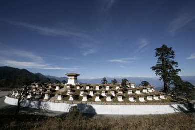This morning, we begin our return journey to Thimphu, the capital of Bhutan. Along the way, we'll stop at Dochula Pass, situated at an elevation of 3,050m. Renowned for its breathtaking views, the pass features the iconic Druk Wangyal Chortens, a collection of 108 stupas, as well as 11 man-made hidden "Igloo-Caves," each adorned with unique paintings depicting various gods and goddesses. Many visitors seeking inner peace amid modern-day stresses come here for meditation. For Buddhists, meditation is often pursued as a path to enlightenment and nirvana. Continuing our journey, we arrive in Thimphu city, located at an altitude of 2,300m. Unlike the concrete jungles of other capitals, Thimphu lies nestled in a serene rural valley, surrounded by stunning natural beauty and featuring traditional Bhutanese architecture. Experience the city’s unique traffic control system, where police officers direct traffic with elegant hand signals instead of lights. Upon arrival, visit the Centenary Farmers Market, a vibrant marketplace where Bhutanese farmers sell fresh local produce, arts, and crafts. The evening is free for you to relax, explore the sights of the capital, shop, or soak in the festive atmosphere of Thimphu. Overnight stay in Thimphu.