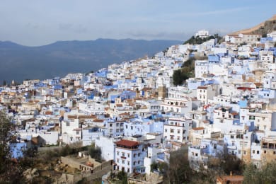 Head north to the striking blue city of Chefchaouen in the Rif Mountains. Mostly untouched since the 15th century, Chefchaouen offers a relaxed atmosphere with some of the friendliest people in the country and is known for its blue-washed buildings in its historic medina (old quarter). Explore its narrow streets and alleyways which cling to the northern hillside of the mountains. Discover Plaza Outa el-Hammam, the main square named for the number of hammams (public baths) which used to encircle it. Find a restaurant or café for a bite to eat, before browsing the many shops offering traditional wares. Visit the Grand Mosque and kasbah (old fortress or fortification) and tour the kasbah's garden, museum, and even some of its old prison cells. As the evening approaches, ascend the path leading to the white Spanish Mosque (20 to 30 minutes) to enjoy one last view over Chefchaouen as the sun sets behind the mountains.