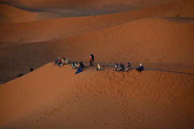 After breakfast in your riad, you’ll start travelling southeast to Merzouga via Midelt and Errachidia. Your first stop will be at Ifran, referred to as “the Switzerland of Morocco”, and then to Merzouga via Midlet and the Ziz Valley. During this journey you’ll experience glimpses of the Middle Atlas and Higher Atlas mountains. Stopping at the famous cedar forest – the largest in Morocco – where you may well sight Barbarian apes. You’ll notice how the scenery changes to reveal hints of the desert as you approach the city Er Rachidia. After lunch in Midelt, your journey continues along the luxuriant Ziz Valley, stopping for panoramic views along the way. We will drive through welcoming Berber villages to Erfoud, In the afternoon you will start your guided camel ride, led by an experienced camel man to explore within the sand sea of Merzouga. Overnight at our desert camp where you will have your dinner. For your convenience, the camp is equipped with flush toilets.