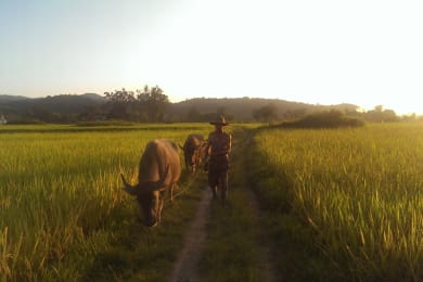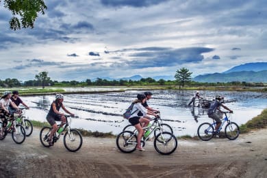 Biking Tour: Mandalay Morning Ride - MDL-012 A fantastic tour just outside the city operated by Grasshopper Adventures a small specialised biking company in Mandalay. We start biking from our conveniently located shop and ride through the back lanes to get out of town. We pass through fresh markets, lively neighbourhoods and head for the north east of the city. After only a short pedal we find ourselves in the true countryside where farmers tend to their fields and villagers go about the daily rituals that have remained unchanged for decades, if not longer. Water buffalo lazily roll in the mud, goats nibble at the foliage, and friendly locals wave from all directions. We make some interesting stops, first at a fresh market to learn about the different produce on sale and then continue on to see bamboo weaving which is used to construct everything from roofs and walls to fans. We take a walk through a typical central Myanmar village and learn about their way of life and their different crops. On our way back to town we stop at a tea shop for some delicious snacks and tea. We return to our shop at around 11:30/noon and bring you by motorbike back to the hotel. Please note, you should wear clothing suitable for this activity: quarter length pants, shorts, t-shirts are all advisable, as are comfortable closed shoes. Sunscreen is also a must. The tour includes transfers at 07:15 AM from your hotel to the starting point and back to your hotel by motorbikes. Free at leisure in the afternoon.