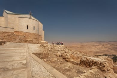 After a splendid night with the Jordanian family, we say goodbye after a shared breakfast and head south to Madaba, where we'll marvel at the Byzantine mosaics and the 'Madaba Map' - which is the oldest preserved map of the Holy Land. From Madaba, we'll make our way to Mount Nebo, the place where the prophet Moses looked across the Promised Land and is also his burial place. On a clear day, which is most of the time, you get great views towards Jericho and beyond from here. After a tasty lunch, we'll make our way down to our resort right on the banks of the Dead Sea, where you have some free time to swim - or rather float - in its incredibly salty waters and to relax by the hotel pool. Don't forget a newspaper or magazine for your iconic Dead Sea photo!