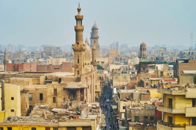 We arrive back into Cairo this morning and transfer to our hotel. Most of the day is then free to explore Cairo as you choose or you may take an optional tour. These include a city tour in Cairo which visits Coptic Cairo, the Citadel and Mohamed Ali Mosque, or a half day tour to Saqqara, Dashour and Memphis to learn more about the history and evolution of pyramid building. Other full day options further afield include a visit to the colonnial city of Alexandria on the Mediterranean, or a trip into the desert outside Cairo to see the World Heritage Site of the Valley of the Whales at Wadi Rayan. In the late afternoon we take a guided walk through the back streets and bazaars in central Cairo. We'll walk through the huge Bab al-Futuh gateway and explore streets dedicated to metalwork, spices, pottery, fabric, jewelery and anything else you can imagine as we gradually enter the more touristy Khan-el-Khalili bazaar. We'll have time for a break to try some tea and a shisha pipe and perhaps enjoy an early dinner of Egypt's unofficial national dish, Kushari before returning to the hotel.