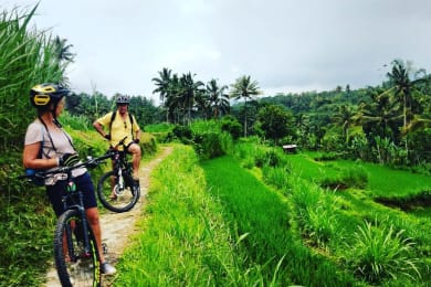 After breakfast you will be picked up to go to Kintamani. Once you reach the staring point, the mountain bikes is ready for you. You will start cycling up to the Batur volcano for about 1,200m. After cycling about 3 hours you will reach a small restaurant overlooking the volcano and lake at the foot of Mount Batur. Enjoy your snacks at the local restaurant while overlooking the mountain top. After getting some rest, get back on your mountain bikes and head downhill through small villages and forests to Gianyar. There will be about 30 km away, you can choose to continue with your mountain bike or by the car that is also provided for you. On the way you will stop at the hidden Krisik waterfall – what a unique experience! Finally, you will be invited by a Balinese family for lunch, before finishing your trip in the afternoon and returning to Ubud, which takes approximately 45 minutes away.