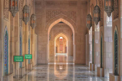 Explore Muscat on a half day city tour. Visit the beautiful Sultan Qaboos Grand Mosque, one of the largest in the Middle East. Then drive through the old walled district of Muscat. Visit the famous Bait Al Zubair Museum showcasing the rich culture of Oman. We also visit Muttrah Souq, where you can bargain for handicrafts and silver items. In the afternoon we take a sunset cruise through Muscat harbour, before transferring to Muscat airport for your return flight.