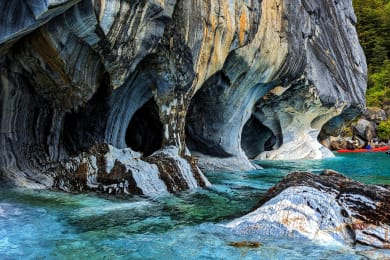Visit to the Marble Chappels, beautiful islands in General Carrera lake with uncommun shapes