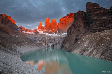 After an early morning pickup from your hotel in Puerto Natales, you will go on a scenic drive through Torres del Paine National Park to hike up to Base Las Torres. Upon arrival at Las Torres sector, we will take the road that heads to the Valley and after 10 minutes of walking, we will get to an old pendant bridge that crosses the Ascencio river. About 150 meters further, we will see a bifurcation and will take the left path that leads to Base Las Torres. Following a winding and green slope and after an hour of walking, we will pass by Chilean Campsite. We will continue walking until reaching the foot of the moraine that gives access to a viewpoint. Afterward, we will continue hiking ascending among the rocks. The path will become steeper and steeper as we approach the most amazing view of the three towers: Central, Monzino, and Dagostini. After taking some pictures and enjoying lunch at the base of the Towers, we will begin our descent. At the end of this experience, you will be taken back to your hotel. Type of Service: Shared Duration: 13 hours Difficulty: High Included: Transportation, bilingual guide, lunch box Not included: Entrance fee to Torres del Paine National Park