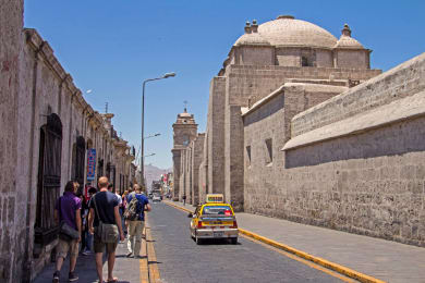 Walking city tour and Santa Catalina (Half day)Private services You will be picked up at your hotel and then the tour begins with a visit to the Cathedral. You will be given a description of the historical features of this monument and then the tours continues to the "Complejo de compañia" where you will visit the chapel called "cúpula" which means dome, then continuing you will go to the streets which really resemble Arequipa like: "San francisco" and "Santo domingo". Last but not least you will visit the monastery of "Santa Catalina" a representative architectural work.