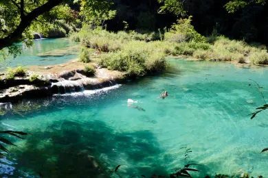 Semuc Champey. Tour where you can swim, climb and slide through the caves and tube down the river.