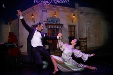 El Viejo Almacén is located in our traditional corner Balcarce and Independencia Street where is our historical “ Tanguería”, in which we offer tango shows every day of the week at 10pm . It lasts for 1 hour and 40 minutes. A quintet ( piano, two bandoneon,violin and a bass guitar), 4 couples of dancing, 2 singers, Ximena Ximenes , Hugo Marcel and an Andean music group belong to our cast. During the show, there are different kinds of beverages. We offer dinner at 20 ´o'clock in the meeting rooms of our restaurant, in front of The “Tanguería”, in the corner of Balcarce and Independencia, too. The menu and location, during the dinner, depends on the service that you take.