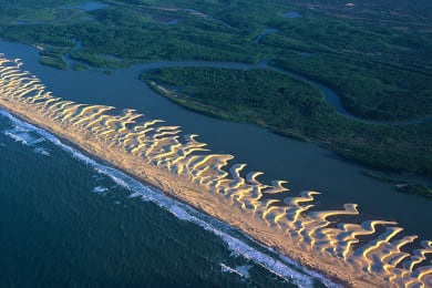 Private transfer in 4×4 of Barreirinhas until Tutóia by the beach and dunes, passing by Paulino Neves. In the port of Tutóia, boarding on a small motorboat across the Delta of Parnaíba. Formed by 85 islands in an area of 2700km², the “Delta das Américas”, is rare phenomenon of nature also found in Africa and Asia. Included: Private transfer Barreirinhas > Parnaíba + Accommodation with breakfast. Stops: Barreirinhas – Tutóia – Parnaíba.