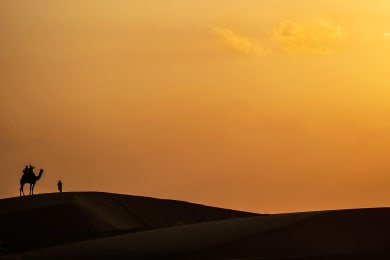 Late afternoon, sunset jeep ride at the sand dunes. Dinner with folk dance show at the camp. Overnight at the desert camp.