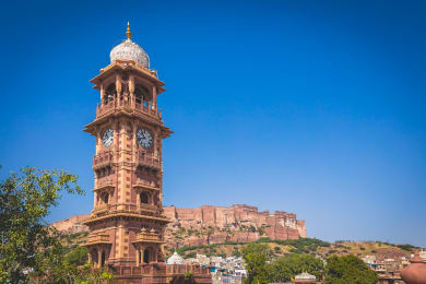 A short walking tour (or additionally tuk-tuk) in the old town in Jodhpur, walk across the local bazaar & find the clock tower surrounded by the local life in Jodhpur.