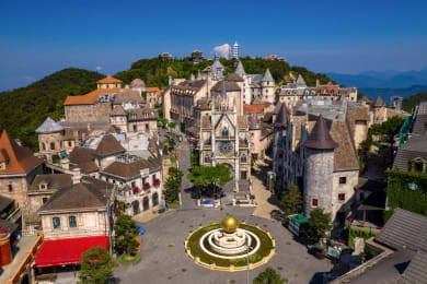 8.00 Pick up at hotel in Danang and head out to Ba Na hills. Take Cable Car which gains 5 world scores to Ba Na hills station. Stop at By Night station to visit Vong Nguyet hills, Linh Ung pagoda, The Old Villas of French. Continue moving up by cable car to the Nui Chua Mountain – the top of Ba Na range, visiting Nghinh Phong top, Le Nim Villas, Orchid Garden… Experience hill climbing train (first and unique funicular in Vietnam) and visit an old French cellar (Debay Ancient Wine Cellar), flower garden Le Jardin D’amour and Linh Ung Pagoda. You should not miss walking on the Golden Bridge amid the foggy hills of the mountain, enjoy the gorgeous view of Da Nang City. Have lunch at restaurant. Afternoon: Free for joining games in Fantasy Park – the third biggest indoor games zone in Vietnam with series of interesting games: 4 – 5D film, skiver, The death race, dinosaur park… (2 hours). 15:00 Return to Da Nang city. End the tour at your hotel.