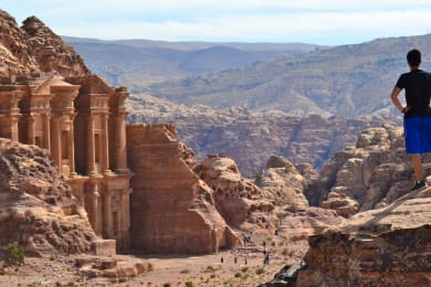 Free beach day to enjoy at Aqaba Or : you have an option to visit one the New Seven Wonders of the World - Petra. This would be a full day trip, taking in one of the highlights of any visit to Jordan. You would enter through the Siq and visit the Treasury, Street of Facades, Theater, Colonnaded Street etc. Your lunch will be served at the Basin Restaurant inside Petra. After lunch you will still have time to visit the Monastery and/or the High Place of Sacrifice. It involves climbing a lot of steps, but you are rewarded with some stunning views. Afterwards, return to the hotel for overnight