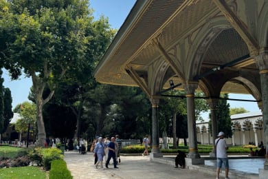 Topkapi Palace, a relic of the glory days of the great Ottoman Empire. The former palace boasted a population of about 4,000 people at its peak and was home to 25 sultans over a period of 400 years. Located on a promontory overlooking the Golden Horn, it sits in tranquil gardens that provide shade from the blazing heat of the summer. Pop into the museum to see the gorgeous Iznik tiles and the ornate stateroom of the harem, among other attractions.