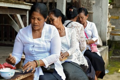 You will spend the day with your hostel family discovering their daily life: offerings, herbal medicine "Boreh", Balinese calendar, Balinese alphabet and handwriting Lontar, recipe for making a Balinese cake or making coconut oil, hiking in nearby rice fields to discover traditional irrigation methods, farming (rice planting, plowing with cows) or simply ride a bike around the village.