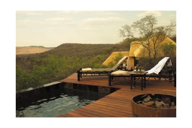 This lodge is set on the Tweedepoort Ridge with expansive views across the Northern plains and the Inselbergs which are situated in the west of the reserve. The main lodge is spectacularly located on two tiers of the ridge, accessed by a wooden bridge that crosses the ravine surrounded by rock figs. It has been designed to blend in with the beauty of the natural surroundings. With only 16 beds and 8 uniquely decorated suites, each with their own deck, Buffalo Ridge offers a private experience. Decorated in natural hues of colour and texture, the thatched suites have sliding doors which reveal the bush and allow the concept of complete integration with the bushveld. The inception of this exclusive lodge has a uniquely inspiring story too in terms of community upliftment and support.