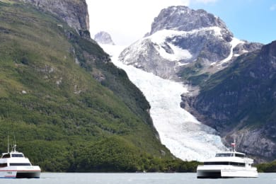 The journey continues towards Mount Balmaceda (2035 meters above sea level) where we will be able to appreciate the glacier of the same name and then we will disembark in Puerto Toro to begin the one-hour round trip walk along the shore of the Témpanos lagoon, accompanied by our bilingual guide, through a native forest of coihues, ñirres and ciruelillo, heading to the Serrano glacier, where we will enjoy the fascinating vegetation and the imposing glacier.