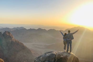 An epic adventure awaits: Prepare for a hike up the mighty Mount Moses. The exhilarating 3-hour trek will lead us to the peak just in time for the best sunrise you have ever seen. Once you took some rest in Dahab after this adventure, gather around a campfire and experience authentic, slow cooked bedouin food right at the beach.