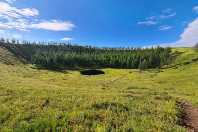 Breakfast in the yurt. You will continue your itinerary towards the place called Uran Togoo, passing through the cities of Erdenet and Bulgan. It is a region of extinct volcanoes, perfect for beautiful walks on the volcano summits. Lunch will be provided along the way. In the afternoon, you will arrive at Uran Togoo, where a hike along a forest path amidst Siberian larch trees will lead you to the crater. You will have the opportunity to observe a surprising variety of plants, as well as numerous birds and insects like the Apollo butterfly. You can then descend into the crater, where you will find a stunning small lake at its center, surrounded by lush vegetation.