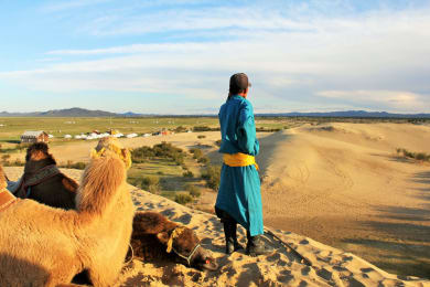 Enjoy breakfast at the camp. In the morning, you will depart from Karakorum. By early afternoon, you will arrive at Khögnö Khan. You will visit the Khamba Monastery, built in the 17th century on the mountain by Zanabazar, a spiritual leader of Tibetan Buddhism at the time. In the late afternoon, you will explore the Elsentasarkhai sand dunes on a camel ride. These dunes, known as "the sand fracture," stretch for 80 km south of the Khögnö Khan National Park. They are accompanied by the Tarna River, which is lined with willow trees.