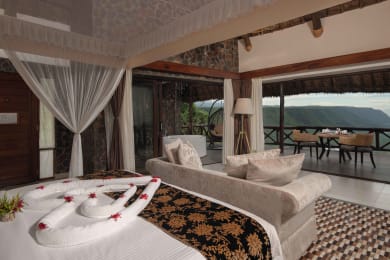 After breakfast, we drive and descend some 610 meters into the crater, which is home to an abundance of wildlife and a photogenic paradise, for a full day of game viewing drive with a picnic lunch at a private scenic site (hippos pool). Ngorongoro Crater, the largest intact caldera in the world teams with an abundance of wildlife permanently resident on the crater floor. Prides of lions, herds of Cape buffalo, impala, Thompson gazelles, rhino, golden and black-backed jackal, zebra, cheetah, leopard, and the spotted hyena freely roam on the crater floor plains. Unmatched for its natural variety and breathtaking beauty, there are few places on earth where such a tremendous diversity of landscapes exist inside a region this size. Apart from its wildlife riches, the crater is also home to hundreds of bird species, refreshing in the small lakes in the crater floor. Spend the night a few minute's drive from Ngorongoro. Overnight: Ngorongoro Sopa Lodge Accommodating 186 guests in its 97 spacious en-suite bedrooms, the Lodge has its own private road to the crater floor. The Lodge is perfectly situated to explore the abundant game in what is often referred to as the “Eighth Wonder of the World”. Its location offers awe-inspiring views over the crater and some of the most breathtaking sunsets to be seen in Tanzania. Each suite has a private lounge with mini-bar, en-suite bathroom, central heating and a private solarium. The Lodge has telephone facilities, satellite TV, a conference room, and a swimming pool situated on the very edge of the rim.