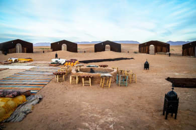 Today, hit the road again towards the desert town of Zagora, you might want to stop a few time for pictures as the scenery is beautiful and as exotic as it gets, you will arrive at zagora in the afternoon and around sunset time you will ride a camel to your desert camp where you will spend a night, enjoy a homecooked dinner with the nomads and stargazing in this remote area where light pollution does not exist, dinner will be served by the campfire while the nomads of the camp sing some Gnaoua spiritual music.