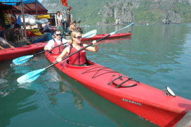 Departure for Ha Long Bay is around 8:00 AM in a shared van. Arrive at the port around 12:30 PM. Welcomed on board, you are taken to your cabin before the trip briefing while you cruise to Bai Tu Long Bay and admire the fascinating formations. Visit Thien Canh Son cave. Then relax at our secluded island-beach or explore by kayak. Later you return back to the boat just in time to watch the beautiful sunset from the top deck before enjoying the bay’s freshest seafood dinner. Inclusion: Transfer, guide on boat, morning shower, entrance fee, kayak, boat / junk, all meals, permits.
