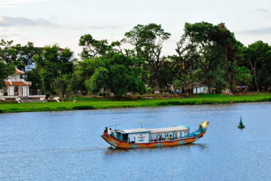 Embark for a beautiful boat ride downstream with pleasant viewing along the Perfume River
