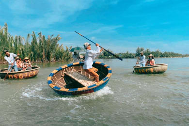 At 8.00 AM, we meet you at your hotel for a very short transfer to the boat docks. Today, we go to a fishing village where you see and experience the life of the fisherman. You do some fishing-related activities such as preparing the fishing tools. Afterwards, we have a short basket boat ride along the village full of lush water coconut trees. We then cycle on the country road through the rice paddy and corn fields as well as alongside numerous coconut trees to a vegetable village. On arrival, you are welcomed with friendly smiles and special welcome drinks: “E” water or local tea. Take part in cooking class with the local family, and under the instruction of preparing ingredients, you cook Hoian special foods and enjoy lunch here. Our afternoon is continued with sightseeing to the famous cultural sites around Hoian, we end our trip at around 5:00 PM at your hotel. Inclusion: Transfer, guide, entrance fee, breakfast, lunch at local family, water, basket boat & fishing tools, water, bike & helmet.