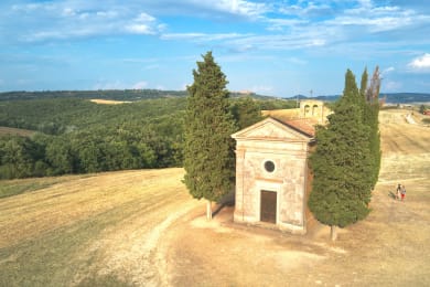 From your hotel, you'll trek to the Val d'Orcia (Orcia Valley) a UNESCO World Heritage Site. After a short climb, you'll have a great view of the valley of oaks and vineyards with the citadel of Ripa d'Orcia and Monte Amiata, the highest point in southern Tuscany, in the background. You'll descend through the vineyards and, if you wish, cool off at Bagno Vignoni, a spa town with a Roman pool in its main square. As you head back to San Quirico, you'll go through the forest, sheltered from the heat. Walking Time: 4 to 5 hours Elevation Gain: 1,642 feet (500m) ascending and descending