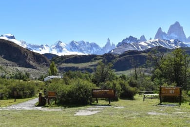 We start at 12 pm with a transfer to El Pilar where we will start our 1 hour, trek to Piedras Blancas Glacier viewpoint. From there, we continue to Río Blanco where the ascent to Laguna de los Tres begins, this part of the adventure will take approximately 2 hours. Box lunch is included. Once we get there we can enjoy, a more than deserved, rest admiring one of the most beautiful views of the area. Once we have rested, we will begin to descend, 2 hours later we will arrive at Río Blanco. From there, we have only 15 minutes walk to the camping area. We will spend the night in Camp Poincenot at, Fitz Roy base, where we will have dinner and breakfast. The camp is located in a wild area without services. It offers tents for 2 people with sleeping bag and insulation mat; and a dining dome with bench and crockery. Bathroom is a latrine. Dinner includes appetizers that are usually hot soups, main dishes such as risotto with chicken and champignones or Ternerita with rosemary potatoes or vegetable panache, dessert like chocolate mousse and coffee . On day 1, we will walk about 15 km. Ovenight @ Camping