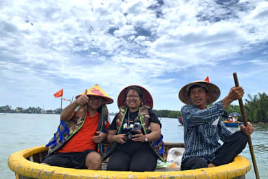 Escape the old town and take backroads to the beautiful islands and villages surrounding Hoi An riding pillion on a vintage Vespa. Explore the magnificent countryside, meet local families and experience colorful village and riverside life in remote communities. Description: Your journey off the beaten path begins as you zoom to an island boasting rural countrysides and ride along the river to an Ancestral House, then over a wooden bridge to a traditional boat builders yard. You then explore villages and zig-zag through the breathtaking scenery of rice paddies and farmland, stopping en route to learn from friendly families about mat weaving, local farming and how to make rice crackers and noodles. After enjoying a yummy snack, we ride towards the coast, along trails lined with white sand and pine trees before fueling up on organic drip-coffee at a village café and learn the art of coffee roasting. Next we stop at the top of Cau Cua Dai Bridge which offers us spectacular panoramic views of Hoi An, then over to the water coconut palm fringed trails to a delicious lunch in a picturesque setting before returning to the heritage town. HIGHLIGHT: ROMANTIC DINING ON THE BAMBOO RAFT Escape the city and spend an evening indulging on the bamboo raft will be placed on the surface of the Co Co river bank. We aim to provide a unique dining experience on the countryside environment with a romantic atmosphere during your stay. You will be served with fresh food and daily catch from the surrounding river, fresh local vegetables will be prepared as appetizers. Highlight: Take a romantic dinner on the bamboo raft by candlelight with your loved; Enjoy the BBQ dinner prepared for you by the professional chef; Panoramic views of the countryside of Hoi An.