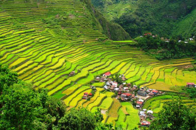 The rice terraces of Batad are undoubtedly the most beautiful and the most spectacular of all the Cordillera and Asia, they are now a UNESCO World Heritage Site. From Banaue, you will take either a tricycle or a jeepney at 8am to reach the saddle of Batad and the parking a little lower where the road ends. You will have no other choice but to go on foot, just like the locals, to the terraces, with your guide. After a break in a small inn on the hillside, you will proceed to the village of Batad, accessible only on foot, walking on the retaining walls of the terraces. If you wish to see and if the path is accessible, you may go to the Tappiya waterfalls. On the way back, you will enjoy the panorama of the amphitheater. Batad gives the appearance of a place out of time, with its traditional Ifugao houses and the rites kept alive by the locals. The local guides are extremely courteous and helpful. You are in Batad, very far from the hectic life of the big cities. Here, life goes on slowly and desires are subject to a beautiful but harsh nature. Today, you can have your lunch in Hillside Inn or have a picnic in the middle of the terraces You will rest at Hillside Inn, surrounded by the terraces and the view of the amphitheater. Don't miss the sunrise in the morning!