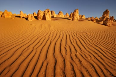 Pick up of your rental vehicle in Perth. Leave Fremantle to reach the Nambung National Park, with its famous Pinnacles Desert. The entrance to the park is 20 kms South of Cervantes, and about 180 kms from Perth. Strange limestone formations sometimes as high as 5 meters high stand in hundreds in the desert. You can also take a relaxing break on the beautiful beaches of Kangaroo Point and Hangover Bay.