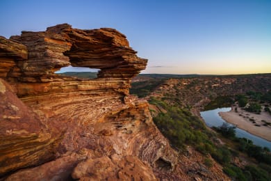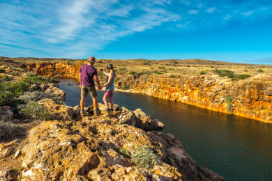 Discover the Kalbarri Nature Park and in particular the short walk called "The Loop”: the start is located about 400m from the car park, it takes about 20 min to access the "Nature's window" site. We also suggest that you take a break at the Z-Bend point of view. After 500m of walking you will reach the viewpoint, located 150m high and offering you a plunging view of the gorges of the national park.