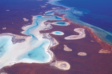 FREE TIME TO EXPLORE DENHAM AND THE SHARK BAY AREA: Denham is Australia's most westerly town and the gateway to Monkey Mia with its dolphins and Francois Peron National Park. There is much to discover and much that can be done on your own but we suggest a scenic flight over the beautiful multi-coloured lagoons from the air, a trip with an Aboriginal guide in a 4WD vehicle required to explore the Francois Peron (ask us). This will leave you with lasting memories. It is also possible to take a wildlife cruise to Dirk Hartog Island and see dolphins, dugongs, whales, turtles and many other marine creatures along the way.