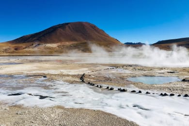 Your guide picks you up early in the morning at your hotel for an exciting adventure. Reach the Tatio Geysers and its famous fumaroles, and enjoy a delicious breakfast at more than 4000m high. Then head to a more exclusive place, the White Geysers, where you can have a dip into its hot water river. Next stop: Guatin and the Quebrada de Cardones. You start an easy hike through its canyon and quickly understand the place nickname: the Cactus Valley. You finish this full morning with the traditional village of Machuca. Return to your hotel in the early afternoon. Note: visit in small groups of 7 people with an English speaking guide.