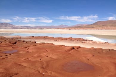 Your guide will pick you up at your hotel in the early morning for a day full of discoveries. First, visit the small village of Toconao with its church, its town square, and a traditional house in which you discover the local products and handicrafts. The house llamas are friendly enough for an impromptu photoshoot! Then head to the Miscanti y Miñiques lagunas in the altiplano for the first meal of your day. While you are enjoying this unique buffet breakfast, your guide will tell you more about volcanoes creation, lagunas and the whole Andes Cordillera geology. You then visit the Salar de Aguas Calientes and start an easy hike in Talar Salar. Your guide will drive you to the Argentinan border to discover the little known Laguna Tuyajto. Lunch break in a traditional restaurant in Socaire village. You will learn all about the prehispanic culture of the place and its famous church. Put on your swimsuit and relax in the natural pool of Peine while sipping a typical cocktail before heading to the Chaxa Laguna for an epic sunset. While the sun goes down, your guide tells you everything about the fauna and flora of this Laguna. Return to your hotel in the early evening. Note: visit in a small group of 7 people with an English-speaking guide.