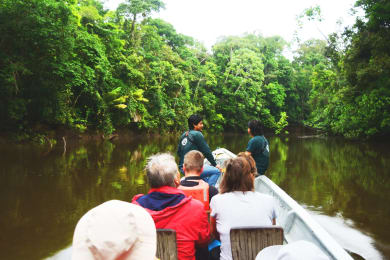 In the morning you will reach “El Puente” (“The Bridge”), the main entrance to the Cuyabeno Nature Reserve. From there you will make your way to your lodge in a motorized canoe. The drive along the Cuyabeno River takes about three hours, and with a bit of luck, you can see the first species of monkeys and birds. Since the river is not too wide in this region, there is a good chance you will get a close look at the flora and fauna. After you have arrived safely at the lodge, you will have time to rest a little and go on a first tour of the area around the lodge. After dinner, your bilingual guide will give you a brief introduction to the next few days' activities.