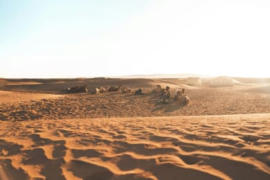 In the early morning, you will take a typical berber breakfast from Zagora. Then, you will enjoy the sunrise by a camel ride in the dunes, before taking the road to come back to the pearl of the south Marrakech, going through the High Atlas Mountains.